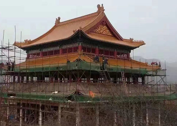 施了金黃釉色的中式筒瓦,琉璃瓦廣泛應用寺廟、園林、景區(qū)、樓閣,門樓等中式仿古建筑房屋面的裝飾。